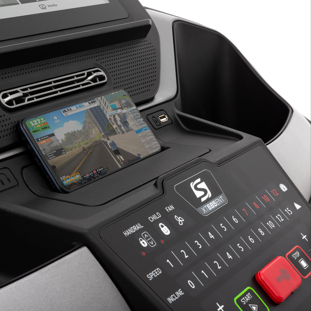 Topperen fra Spirit XT-serien er Spirit XT685. Det, der umiddelbart falder i øjnene, er den ekstremt robuste rammekonstruktion. Stålstellet er meget tungt, ikke mindre end 122 kg, hvilket sikrer at løbebåndet ikke vibrerer under din træning. Med en motor på ikke mindre end 4,0 hk er Spirit XT685 et løbebånd for de ivrige løbere blandt os.